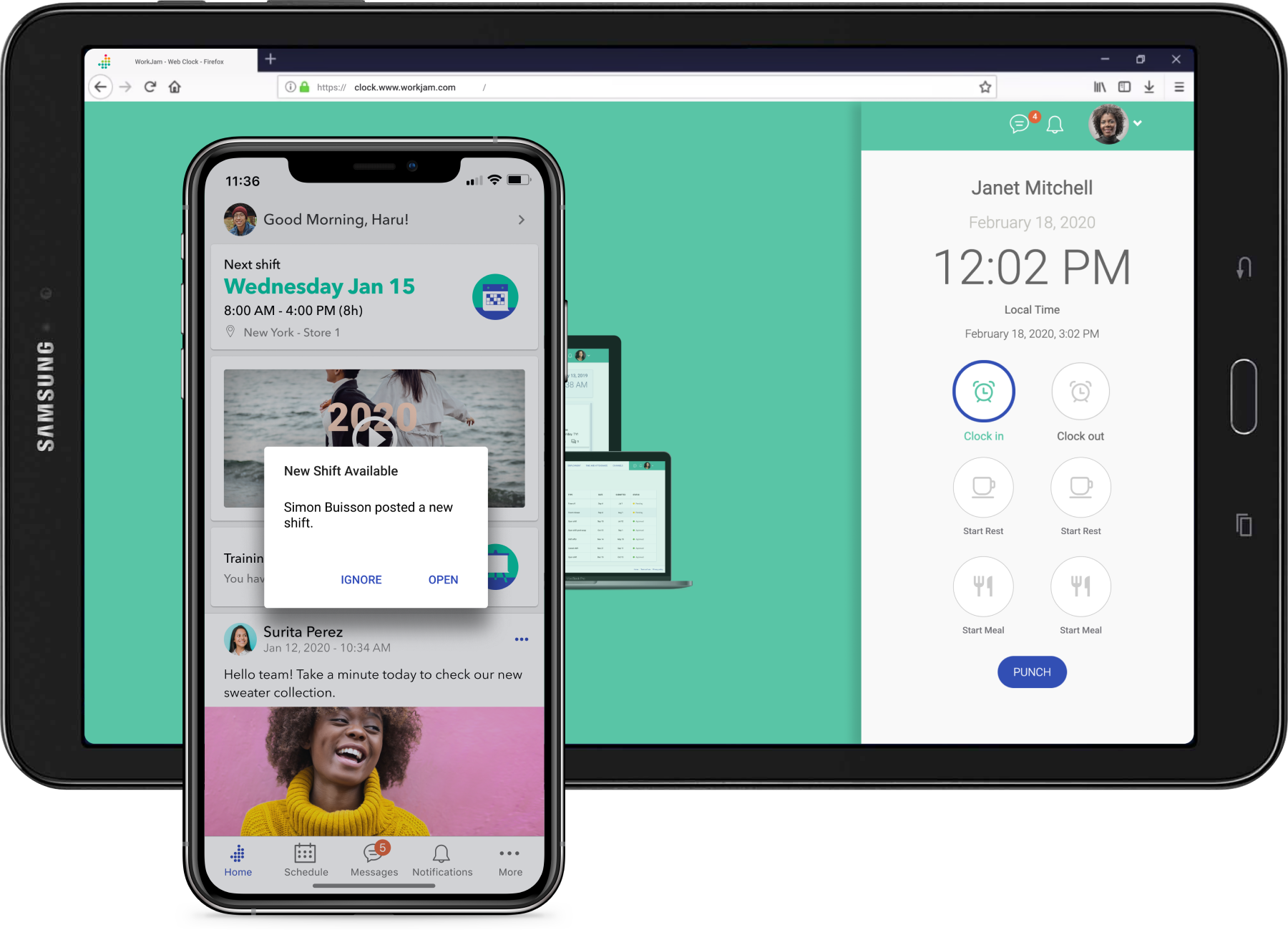 WorkJam的数字化工作平台技术旨在通过灵敏调度、变革性交流、体验式学习及通过单一用户体验定制的无缝识别功能将您的非办公桌员工聚集在一起。